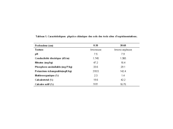 Tableau 1 : Caractéristiques physico-chimique des sols des trois sites d’expérimentations
