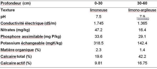 Tableau 1. Caractéristiques physico-chimique des sols des trois sites d’expérimentations
