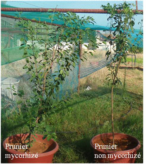 Photo 2 : Ramification du système aérien du prunier sous l’effet de la mycorhization arbusculaire