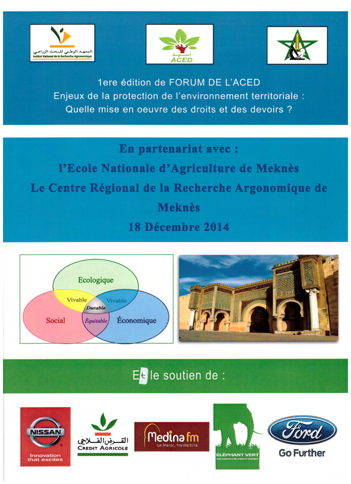 INRA Meknès participe au 1er Forum Environnement de l’ACED, 18 Déc. 2014